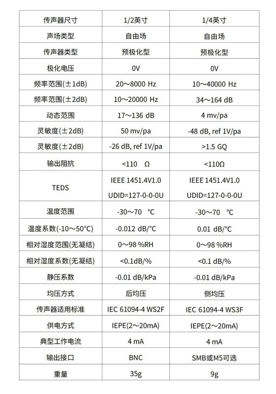 2、符合標(biāo)準(zhǔn) IEC 61094-4:1995 測(cè)量傳聲器 第4部分:傳聲器工作標(biāo)準(zhǔn)規(guī)范 GB/T 20441.4-2006 測(cè)量傳聲器 第4部分:傳聲器工作標(biāo)準(zhǔn)規(guī)范 IEEE 1451.4 智能傳感器接口標(biāo)準(zhǔn) 3、產(chǎn)品參數(shù) ![]() 產(chǎn)品特點(diǎn) 01 前置放大器內(nèi)置 TEDS芯片 TEDS芯片功能:可實(shí)現(xiàn)傳感器的信息存儲(chǔ),除了制造商、序列號(hào)和其他信息外,傳感器的靈敏度也存儲(chǔ)在TEDS中,數(shù)據(jù)采集設(shè)備可以直接讀取傳聲器信息。 因此測(cè)試前不需要進(jìn)行參數(shù)校準(zhǔn),從而縮短測(cè)試時(shí)間,保障了傳感器輕松設(shè)置的優(yōu)勢(shì)與可信賴的測(cè)量結(jié)果。 02 使用便捷、易安裝 傳聲器可直接與信號(hào)調(diào)理器或數(shù)據(jù)采集器連接,體積小、結(jié)構(gòu)緊湊。 03 高精度、高穩(wěn)定性和高可靠性 IEPE 恒流源供電,可以實(shí)現(xiàn)對(duì)傳感器的精準(zhǔn)驅(qū)動(dòng),保證輸出信號(hào)的精準(zhǔn)度與穩(wěn)定性。 04 使用壽命長(zhǎng) 前置放大器外殼使用不銹鋼材質(zhì),結(jié)構(gòu)牢固,同時(shí)傳感器通過(guò)多次環(huán)境老化試驗(yàn)測(cè)試,測(cè)試數(shù)據(jù)顯示平坦穩(wěn)定。 ![]() ![]() 05 適合高頻、高聲壓、聲音信號(hào)測(cè)試 寬頻率范圍、寬動(dòng)態(tài)范圍 END 北京聲科測(cè)聲學(xué)技術(shù)有限公司,成立于2009年,是一家以傳感器為根基,研發(fā)和制造行業(yè)測(cè)試系統(tǒng)和專業(yè)設(shè)備,為客戶提供一站式解決方案的國(guó)家級(jí)“專精特新”企業(yè)。 公司研發(fā)團(tuán)隊(duì)具備深厚的聲學(xué)振動(dòng)技術(shù)背景,秉承客戶需求驅(qū)動(dòng)產(chǎn)品研發(fā)的理念,與眾多國(guó)內(nèi)外高校院所、科研機(jī)構(gòu)和企業(yè)開(kāi)展了廣泛的合作項(xiàng)目,項(xiàng)目涵蓋各類行業(yè),尤其在電聲、航空航天、軌道交通、醫(yī)療、環(huán)保、高校院所、電力能源等行業(yè)。 咨詢電話:400-999-7956 |