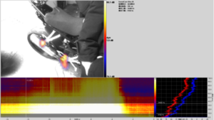 將聲學(xué)相機(jī)與機(jī)車的距離增大,可以看到前腳踏板也有很強(qiáng)噪聲能量團(tuán)。
