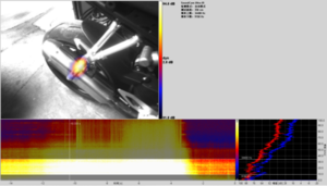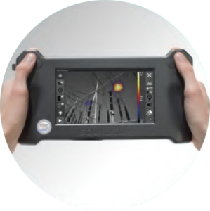 2)聲源定位: 通過波束形成技術(shù)實(shí)現(xiàn)噪聲源的定位,其原理是通過調(diào)整麥克風(fēng)陣列中每個(gè)麥克風(fēng)采集的聲音信號的相位與幅度,在特定區(qū)域形成“聲音聚光燈”,實(shí)現(xiàn)聲波的空間選擇性增強(qiáng)。 3)視覺融合: 將聲源位置與攝像頭畫面疊加,生成實(shí)時(shí)聲場熱力圖,用不同的顏色標(biāo)記聲壓強(qiáng)度。 聲學(xué)相機(jī)可以應(yīng)用在哪些場景?1)放電缺陷檢測 局部放電是電力設(shè)備絕緣在足夠強(qiáng)的電場作用下局部范圍內(nèi)發(fā)生的放電,每一次局部放電對絕緣介質(zhì)都會有一些影響,使絕緣強(qiáng)度下降,造成高壓電力設(shè)備絕緣損壞,甚至?xí)斐扇藛T安全隱患。聲學(xué)相機(jī)能夠?qū)⒕植糠烹姰a(chǎn)生的聲學(xué)信號疊加顯示在被測對象表面形成可視化的定位效果,幫助運(yùn)維人員快速、準(zhǔn)確、直觀的發(fā)現(xiàn)局放缺陷。 2)機(jī)械缺陷檢測 在外力或電磁應(yīng)力反復(fù)作用及長期疲勞效應(yīng)下,電力設(shè)備會產(chǎn)生螺絲松動、壓緊裝置松弛、金屬電極焊接處虛焊或斷裂等機(jī)械缺陷,并最終引發(fā)機(jī)械失穩(wěn)或電氣絕緣故障等問題,嚴(yán)重影響到電力設(shè)備及電力系統(tǒng)的安全可靠運(yùn)行。機(jī)械缺陷會引起設(shè)備異常振動,并最終以噪聲的方式輻射出去,所產(chǎn)生的不同于設(shè)備正常運(yùn)行時(shí)的異常聲音(異響),可以作為缺陷診斷依據(jù)。 3)環(huán)境噪聲監(jiān)測 在電力分配環(huán)節(jié),變電站噪聲超標(biāo)是最主要的矛盾,特別是在生活居住區(qū),居民對周圍聲音的控制要求更是越來越高,控制噪聲最有效的方法就是噪聲源控制,而最主要的就是準(zhǔn)確找到聲源位置,聲學(xué)相機(jī)簡潔的操作流程可以幫助任何初級用戶快速發(fā)現(xiàn)聲源位置,其直觀的檢測結(jié)果為進(jìn)一步的噪聲治理提供了依據(jù)。 4)氣體泄漏檢測 壓縮空氣泄漏時(shí),在泄漏點(diǎn)因滿流會產(chǎn)生聲波/超聲波能量,聲學(xué)相機(jī)能夠?qū)崿F(xiàn)泄漏點(diǎn)的快速非接觸式、可視化檢測。 聲學(xué)相機(jī)應(yīng)用案例我司的一款聲學(xué)相機(jī)用于測試機(jī)車的異響,快速定位出了異響來源。某品牌的機(jī)車有異響,為了驗(yàn)證車噪聲是否來自后腳踏板,用聲學(xué)相機(jī)對準(zhǔn)機(jī)車表面,逐漸拉高油門,從屏幕上可明顯看見后腳踏板的聲音能量團(tuán)。同時(shí),圖中用不同的顏色標(biāo)記聲壓強(qiáng)度,可以直觀看到聲壓強(qiáng)度分布。