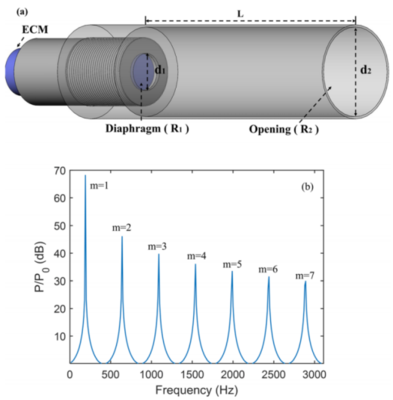 期刊封面圖 在文章中,研究人員提出了一種溫度測(cè)量裝置—聲學(xué)法布里-珀羅諧振器(AFPR),AFPR由駐極體電容傳聲器和聲波導(dǎo)組成,利用環(huán)境白噪聲,在裝置里產(chǎn)生聲學(xué)共振,然后通過(guò)檢測(cè)不同階次的諧振頻率,推算出空氣溫度。這其中的關(guān)鍵在于,諧振頻率和模式階數(shù)之間存在著線(xiàn)性關(guān)系,通過(guò)這條隱藏的 “線(xiàn)索”,可以得到空氣溫度。 另外,考慮到實(shí)際環(huán)境的復(fù)雜性,在實(shí)際測(cè)量時(shí)進(jìn)行誤差補(bǔ)償和頻率響應(yīng)優(yōu)化,提高測(cè)量準(zhǔn)確度。