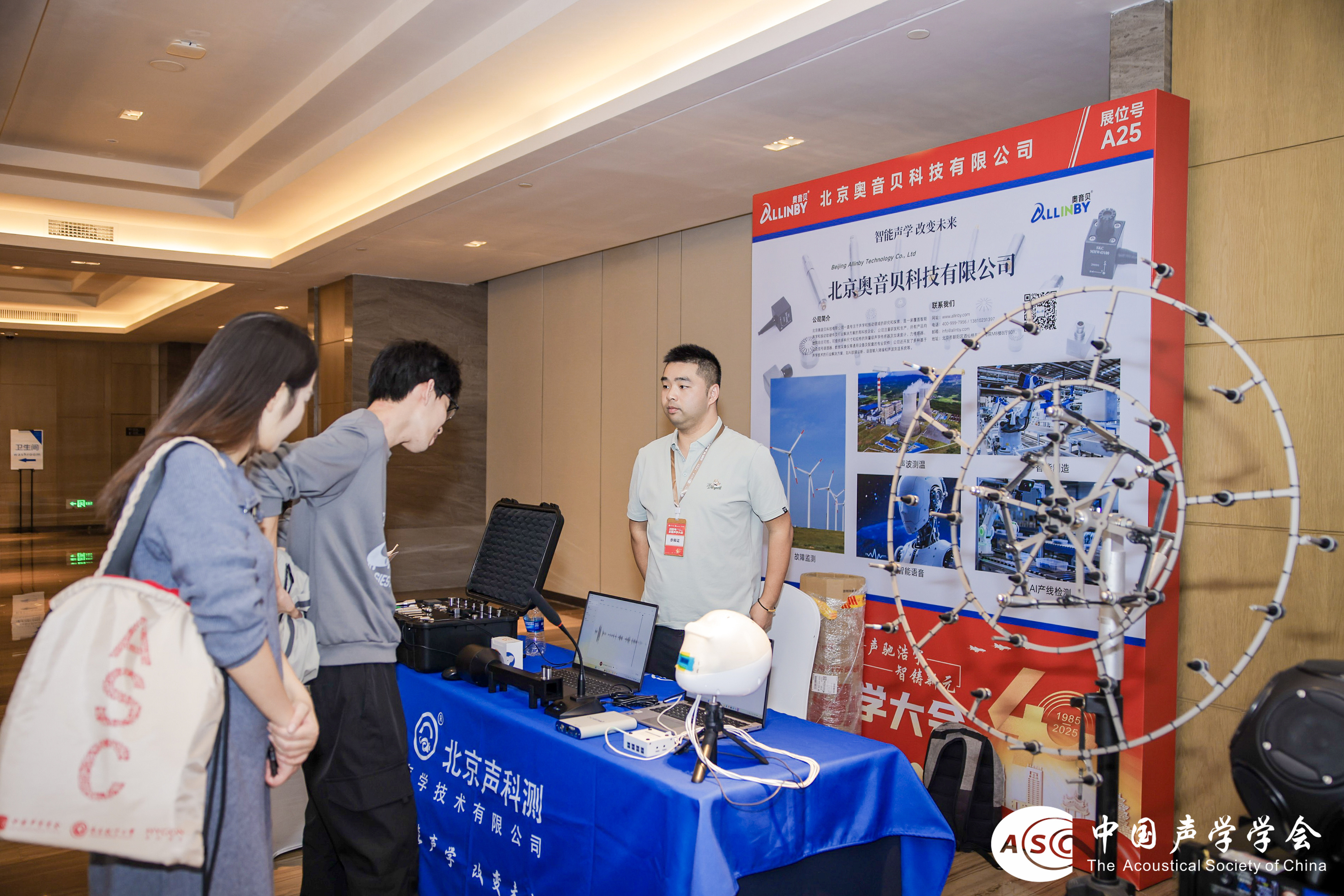發(fā)表時間:2025-11-05 09:21 10 月 31 日,由中國聲學(xué)學(xué)會主辦、南昌航空大學(xué)承辦的 2025 年全國聲學(xué)大會在南昌盛大啟幕。這場以 “聲馳浩宇,智鑄新元” 為主題的行業(yè)盛會,匯聚了聲學(xué)領(lǐng)域的頂尖專家、科研機(jī)構(gòu)與領(lǐng)軍企業(yè),通過 “產(chǎn)、學(xué)、研、用” 的深度融合,全面展現(xiàn)聲學(xué)技術(shù)的前沿趨勢與產(chǎn)業(yè)成果。北京奧音貝科技有限公司(以下簡稱 “奧音貝”)攜核心產(chǎn)品線與創(chuàng)新解決方案亮相 25 號展位,以深耕聲學(xué)領(lǐng)域的技術(shù)積淀,成為大會焦點(diǎn)之一。